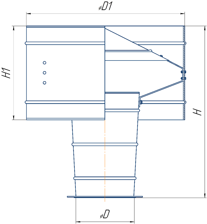Дефлекторы изготавливаются из оцинкованной стали, имеют ниппельное или фланцевое соединение. До диаметра 400мм – дефлектор имеет ниппельное соединение, свыше 400мм – соединение на фланцах.