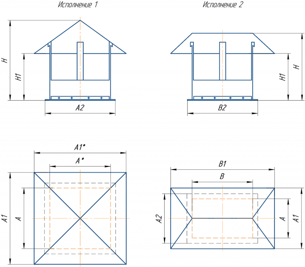 Зонты вентиляционные круглые типа ЗП устанавливаются в шахты вентиляционных систем с прямоугольным сечением для защиты от атмосферных осадков, при этом привод движения воздуха может быть естественный и механический.Конструкция
