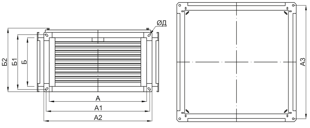 | Рекуператор | А,мм | Б,мм | А1,мм | Б1,мм | Б2,мм | А2,мм | Д,мм | А3,мм | Масса,кг |